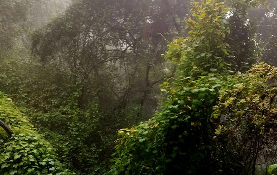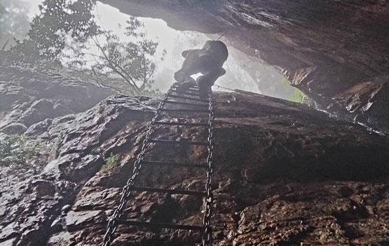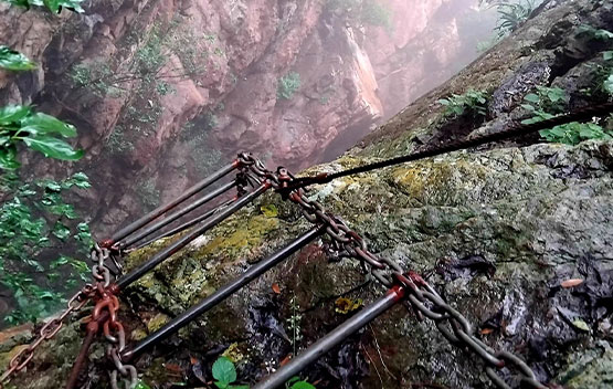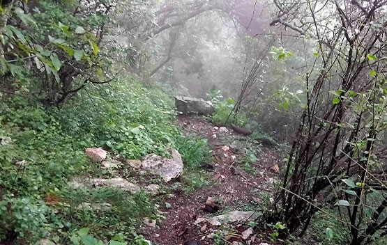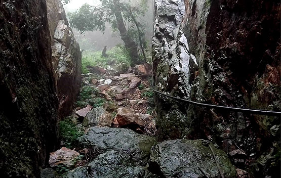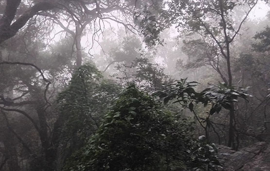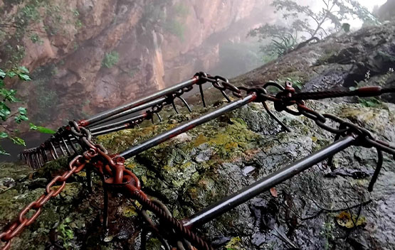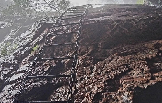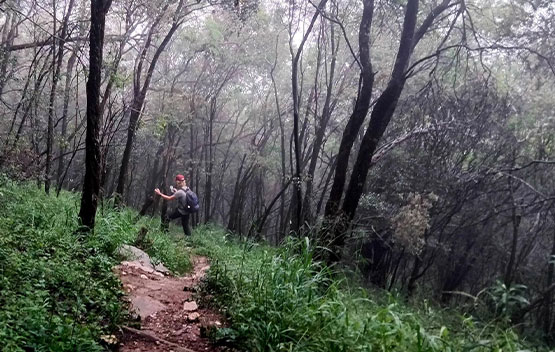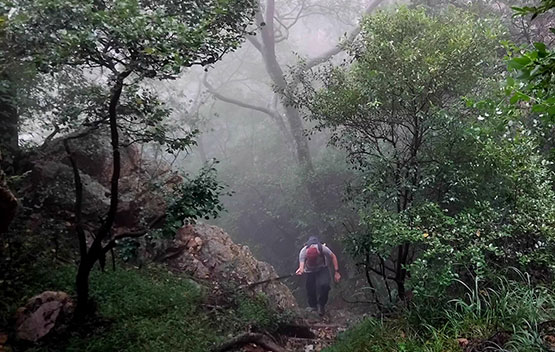 We started our hike from the JHC foothold camp and headed towards the mountainside. It was tough going as we headed up in search of the ladder gully. The approach to the ladder was tricky, and we scrambled up, assisted by ropes and chains. We finally reached the chain ladder and took extra precaution as we climbed up due to the wet weather. Once at the top, there was another scramble up before we reached a small plateau. After a short rest, we followed the ridge line in the mist and made our way towards Footloose Gully for our descent. Once again, ropes and chains assisted us as we took care not to slip or dislodge rocks that could be hazardous to us. Once out of the gully, it was an easy downhill back towards the camp.