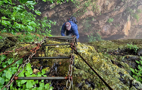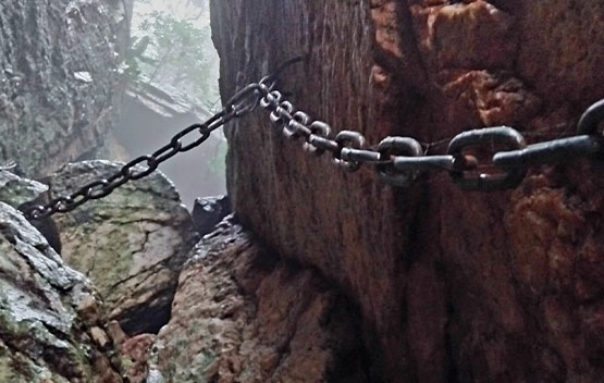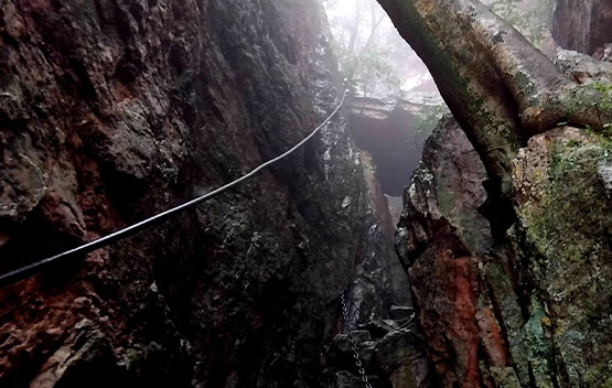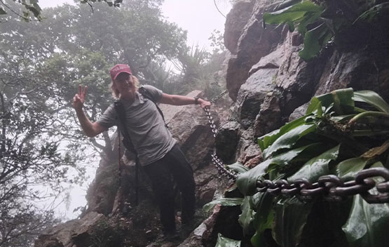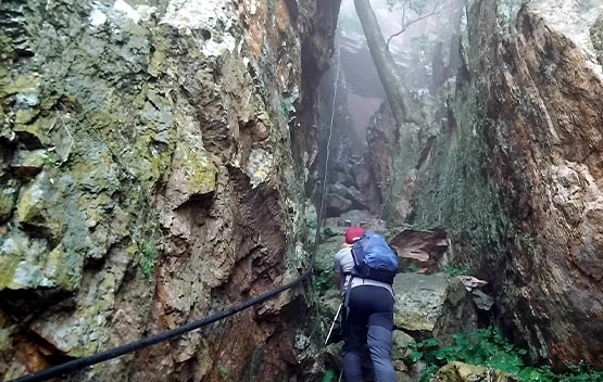 It was a cold and wet day, so our rain jackets came in handy. Gloves helped a lot with all the scrambling over rocks and especially when going up the chain ladder. The rain made the trail super slippery, but our preferred Merrell hiking boots kept us sturdy. Hydration is a must, although one can find fresh water along the trail. A hiking stick was also needed, especially when navigating the route downhill. This hike is technical and not suitable for beginners or those with a fear of heights.