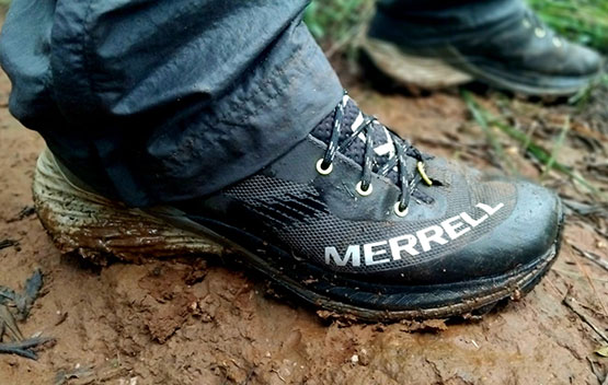 Merrell Hiking boots; water; rain jackets; gloves and a hiking stick
