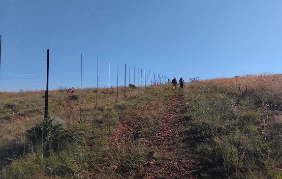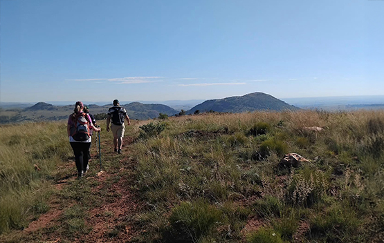 The 8 km route is rated as moderate. We began the walk with a gradual but challenging ascent up the mountain. You will need cardio fitness to manage the climb. Once at the top, we saw the Muldersdrift surroundings on a clear and beautiful day. The route took us along the top of the mountain, where we gradually descended down a rocky and technical path.