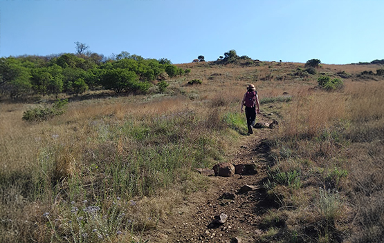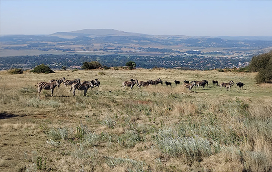 We completed 10,5 km and started our adventure by heading to the southern side of the reserve to explore the Marais farmstead. We then made our way gradually up the mountainside in search of the beacon trail. Along the route, we spotted black wildebeest as well as a dazzle of Zebra. After taking in the views of the Johannesburg skyline, we made our descent and followed the Bloubos Spruit back to the reception area.