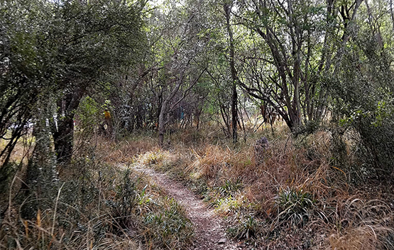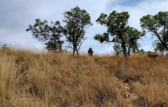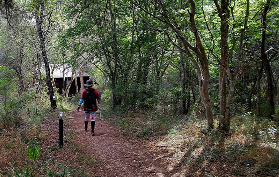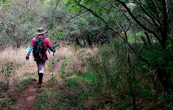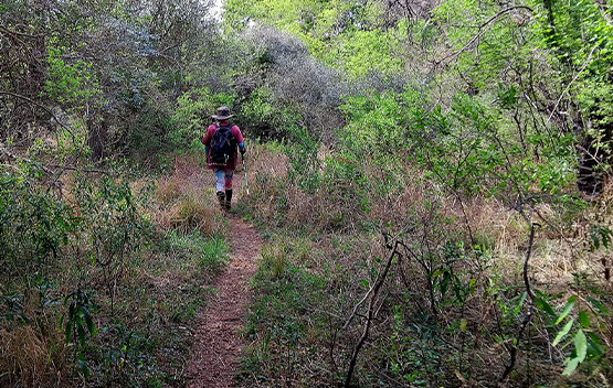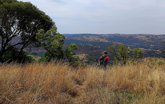 Voets Toets Hiking completed the Kudu trail. The trail is well-marked and offers hikers a wonderful experience in the African Bushveld. The first kilometre of the walk is flat and takes you over a gentle flowing stream. The next section proceeds into a steep incline up the mountain. It's a climb that requires fitness and some technical ability to keep your footing. Once at the top of the mountain, there are exquisite views of the greater surrounds of the Cradle of Humankind and Hartbeeshoek. The peace and tranquillity of the surroundings were worth the tough climb! The trail takes you along the plateau before leading you back down the mountainside. It's fairly challenging with a rapid descent, so good footing and balance are essential.