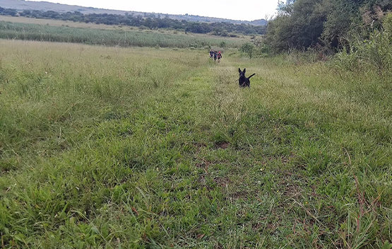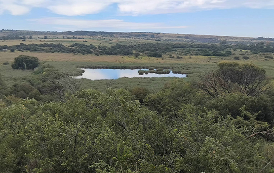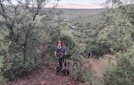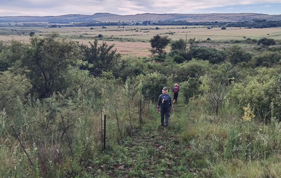 We started our hike with a steep incline up the mountainside. Once at the top, we had a beautiful view of the surrounding area. The trail then led us back down into farmland, where we saw horses and cow's grazing. The mixture of agricultural land and bushveld savanna provides a unique hiking experience. We passed the Swartspruit dam where ducks were enjoying their surroundings. It's an easily navigated route that takes you through rolling hills, lush greenery, and sightings of diverse wildlife.