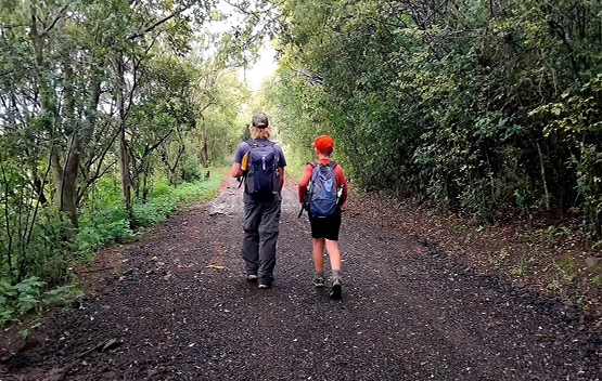 It was a rainy morning, so protective gear was needed. A trekking pole came in handy when navigating the slippery path. The sun eventually made an appearance, and not before long, it was sweltering. Adequate hydration is always a must. Our Merrell hiking boots kept us sturdy in the muddy and rocky terrain.