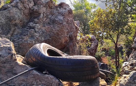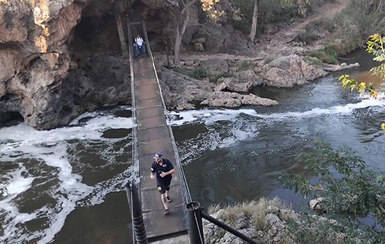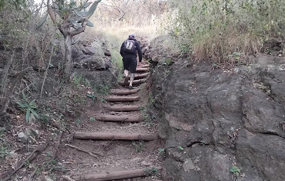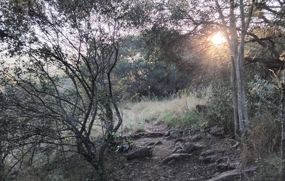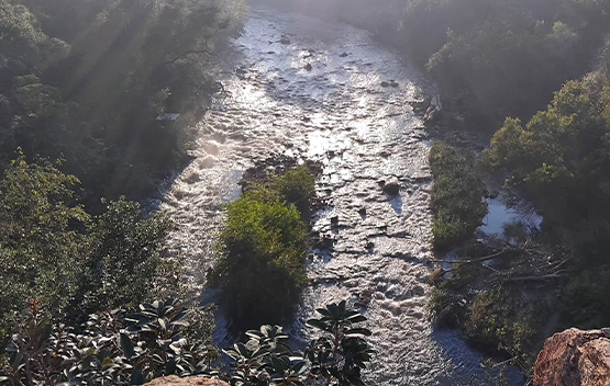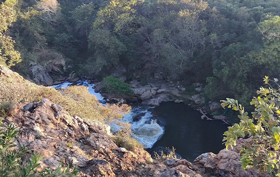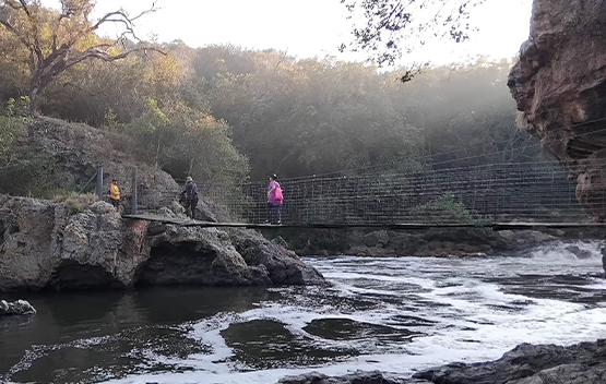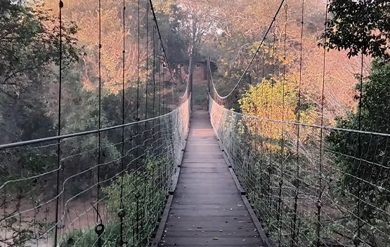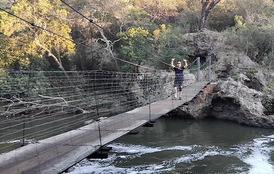 The trail starts at Hadeda Camp and hugs the Hennops River before heading up the mountainside. It passes historical sites such as Hospital Cave, old settlement ruins, as well as an old dolomite mine. There are also two suspension bridges and a cable car, which provide a unique element to the hike.