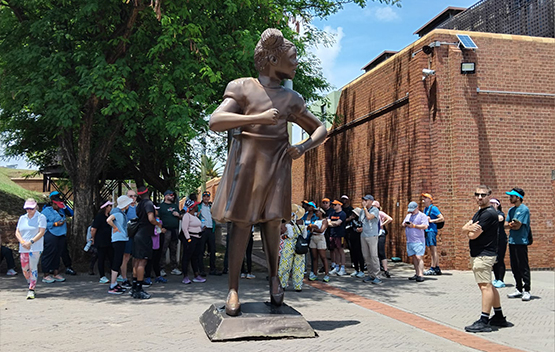 After a break, we made our way down the stairs and visited the Nzunza portrait, a beautiful building artwork, by local artist Hannelie Coetzee. We visited the threshold of justice and the Constitutional Court, where the flame of democracy burns steadily. Our adventure ended at Indwe Park.