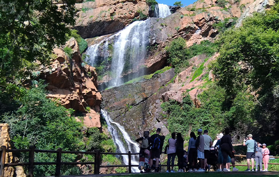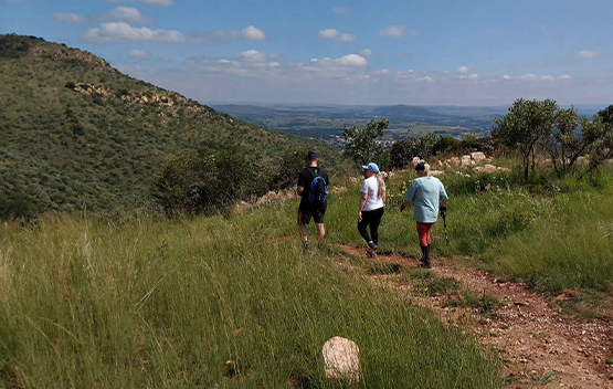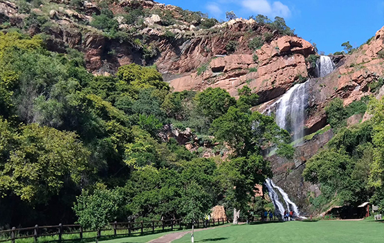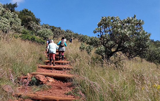 The trail begins at the Witpoortjie falls and takes you up the mountainside with beautiful views of the surrounding gardens. It's a rocky trail that certainly gets the heart rate up! Once at the top of the mountain, we could see far into the Roodepoort distance. The trail takes a fairly steep descent, where we ended back at the main road of the gardens.
