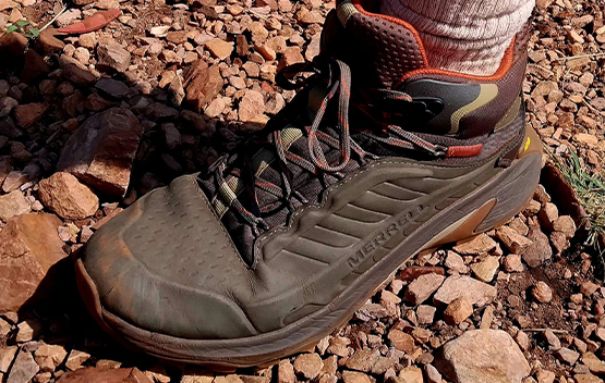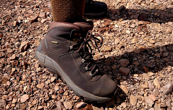 Merrell hiking boots; sun protection; adequate hydration and a hiking stick